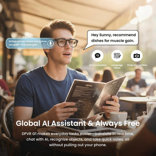DPVR G1 Smart Glasses with Camera Bluetooth 4+32Gb AI Glasses for Men Women Real-Time Translation Video Recording Voice Control Wearable